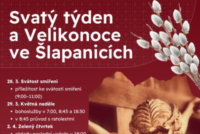 Velikonoce patří k nejvýznamnějším křesťanským svátkům v roce. Farnost Šlapanice zve všechny k jejich prožití prostřednictvím bohoslužeb a společných setkání.