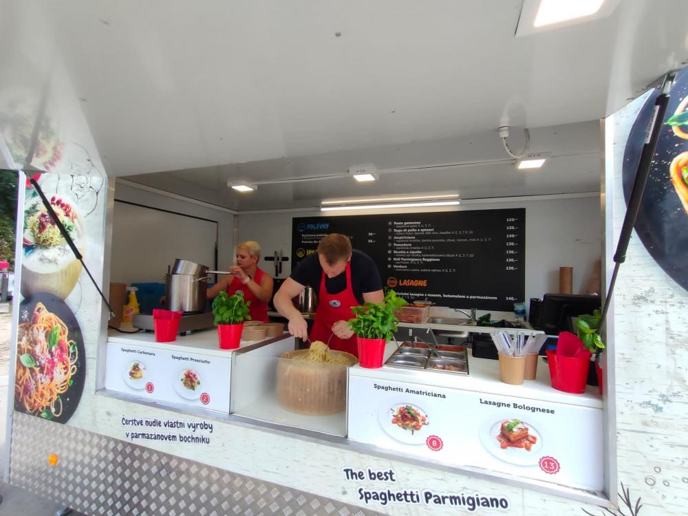 K ochutnání byla mexická (Mexeso street food), indonéská či italská (Spaghetti Parmigiano) kuchyně. Samozřejmostí byly burgery či trhané maso (LUKAfood a Bad boys burgers&grill).