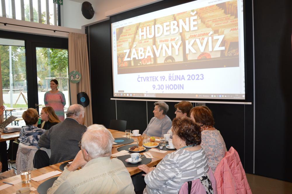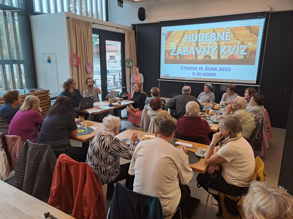 Na ranním Hudebně zábavném kvízu provedli Petra Hanušová a Jan Sláma z Naděje s.r.o. účastníky repertoárem nejen českých zpěváků. V tématických kvízech společně hledali správnou písničku dle slov v textu nebo přiřazovali hudbu k filmům. Zvláště u identifikace zpěváka z méně známých songů se někteří při vzpomínání jen lehce zapotili tam, kde by si dnešní mládež ani neškrtla. Mezitím si stihli společně zazpívat i pár vybraných písniček.