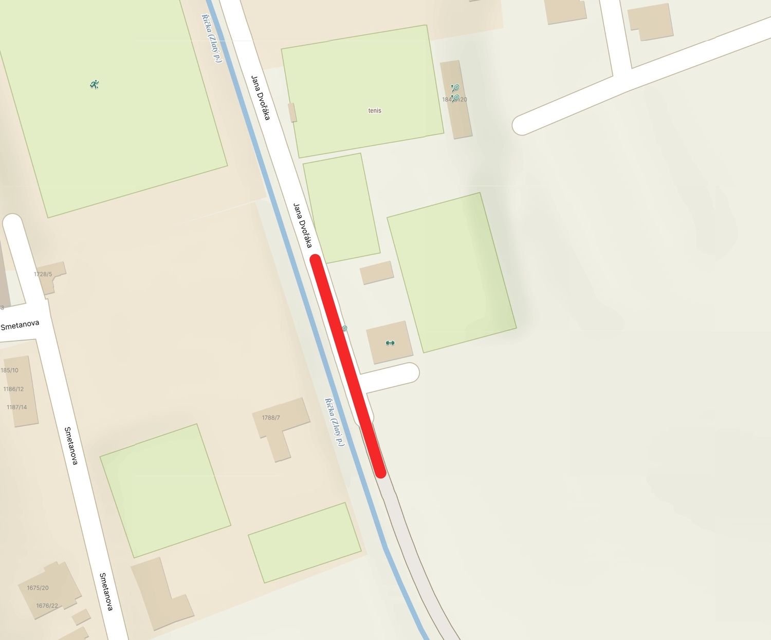 V termínu od 20. do 24. října 2025 dojde k úplné uzavírce účelové komunikace ul. Jana Dvořáka ve Šlapanicích. Délka uzavírky je asi 60 metrů (oblast od tenisových kurtů po cyklostezku) bez náhradní objízdné trasy.