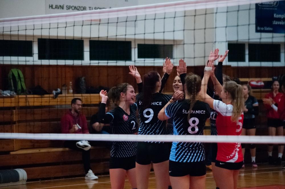 TJ Sokol Šlapanice - Kočendová, Hubíková, Hrochová, Koltsová, Novotná, Řeháková. Libero: Gállová. Střídaly: Formanková, Přibylová, Zelená, Šubíková, Provazníková.