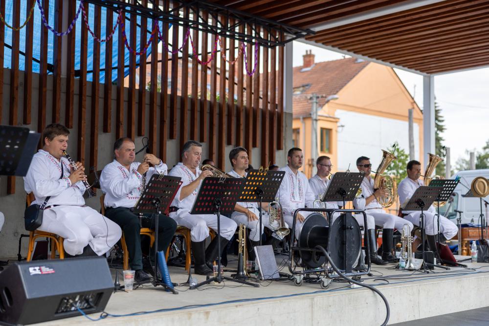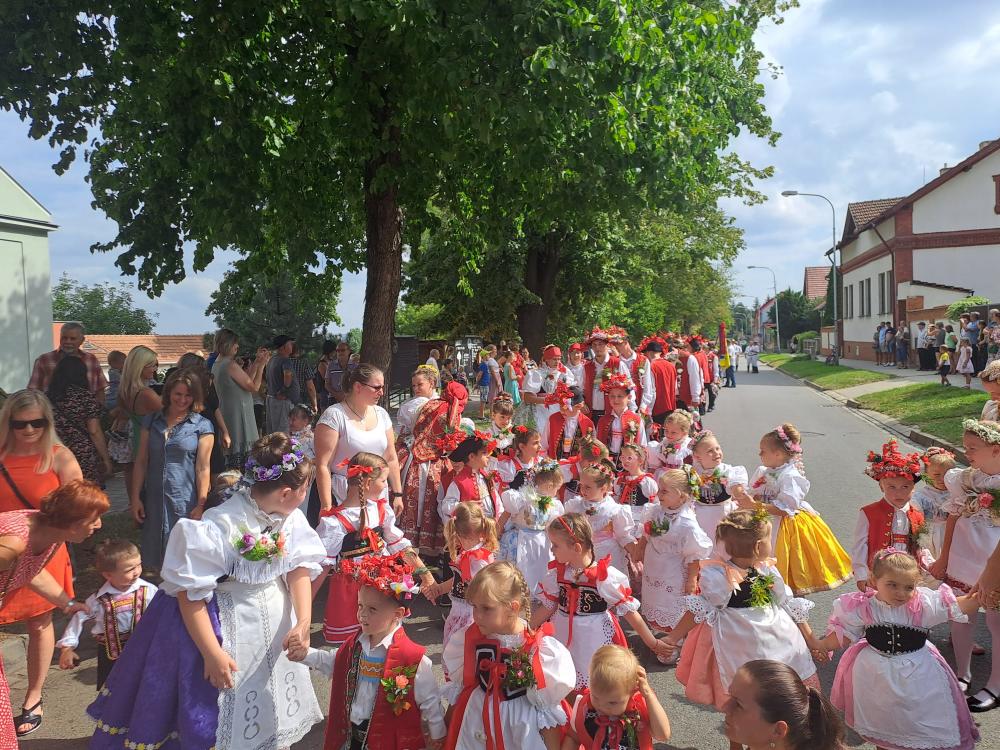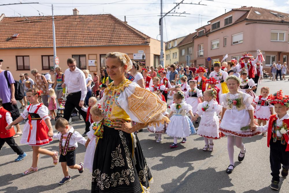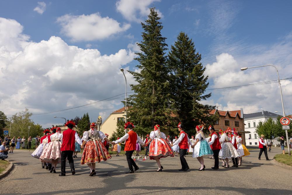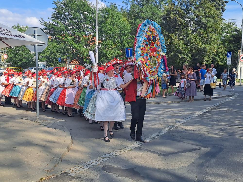 Krojovaný průvod se vydal od sokolovny do městského parku, kde jsme uzavřeli letošní slavnosti pod hudebním doprovodem cimbálové muziky Kyjovsko a kapely Dambořanka.