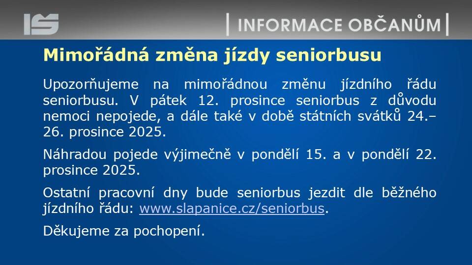 8.00 - 12.00 jsou na pracovišti ve Šlapanicích otevřeny pouze přepážky Odboru správních činností - občanské průkazy, cestovní doklady a evidence obyvatel.