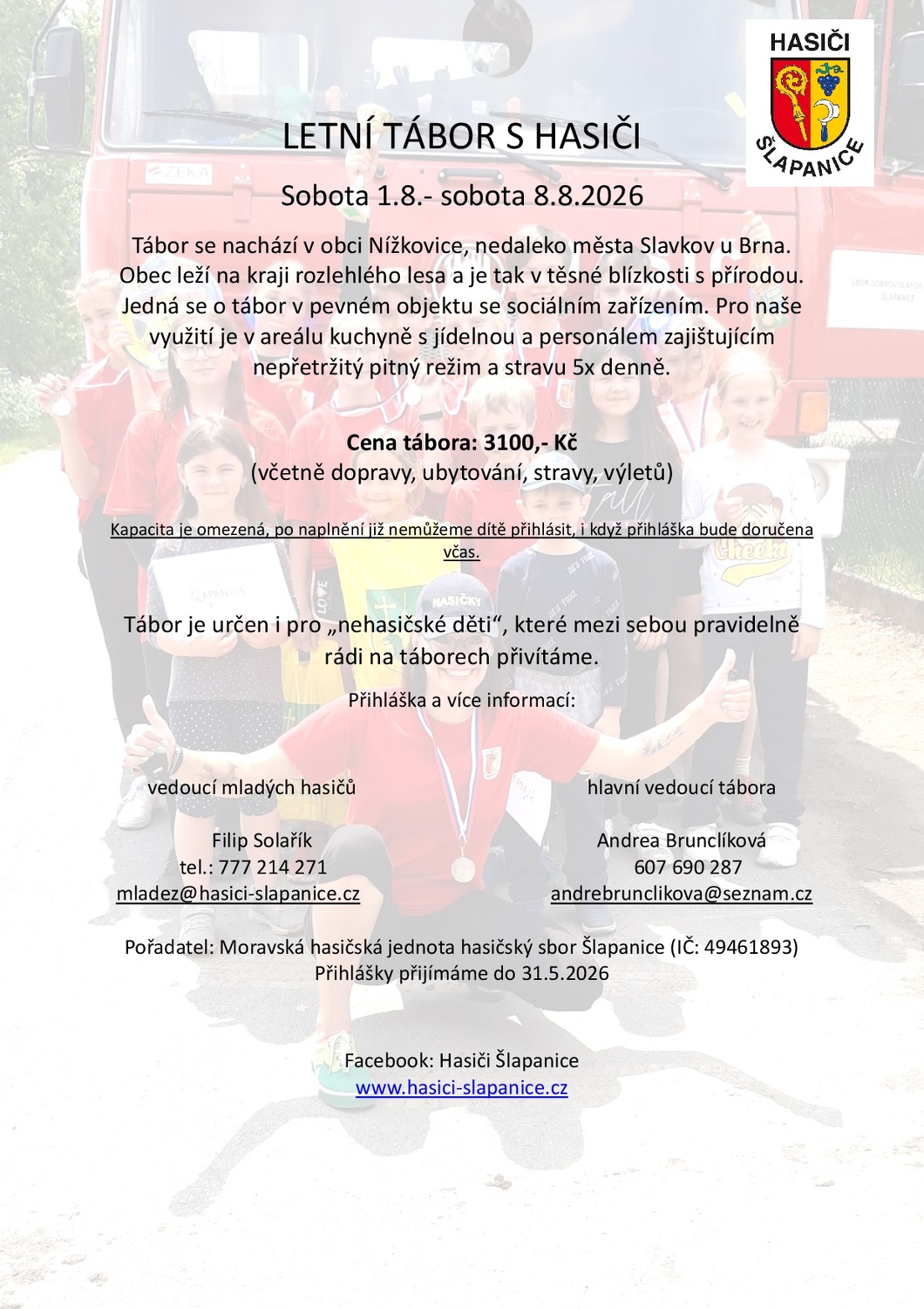 Kontakty: www.hasici-slapanice.cz, mladez@hasici-slapanice.cz